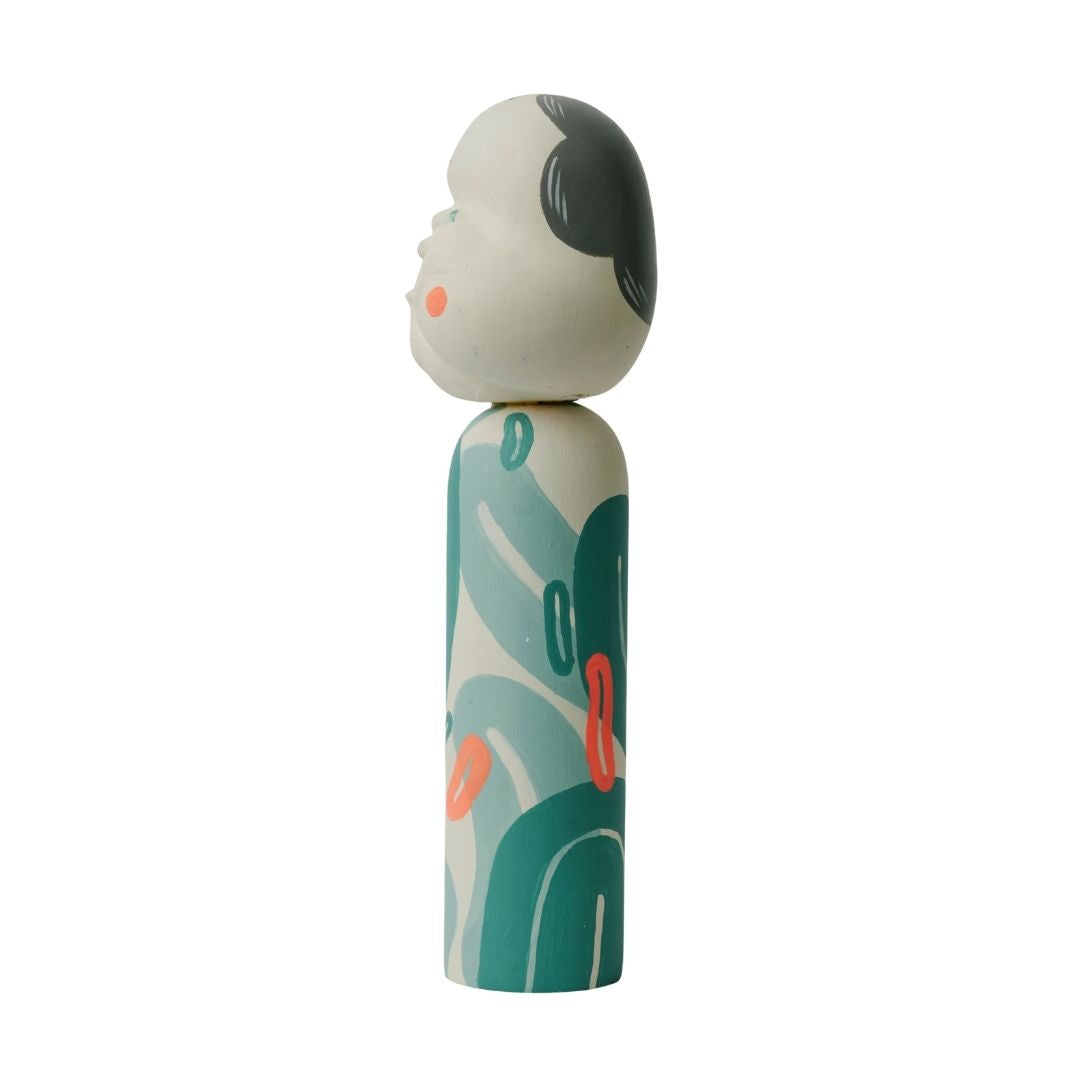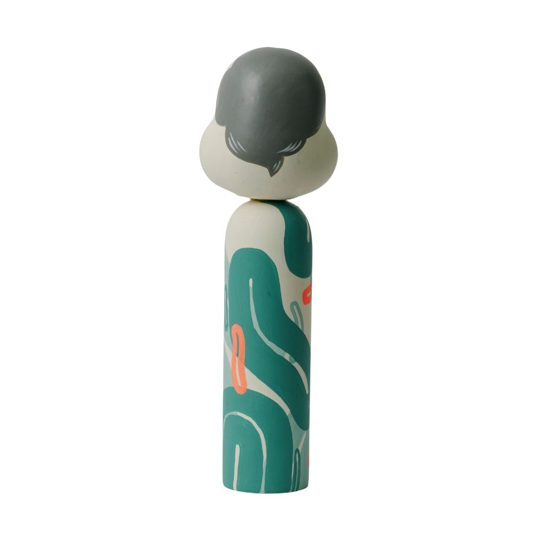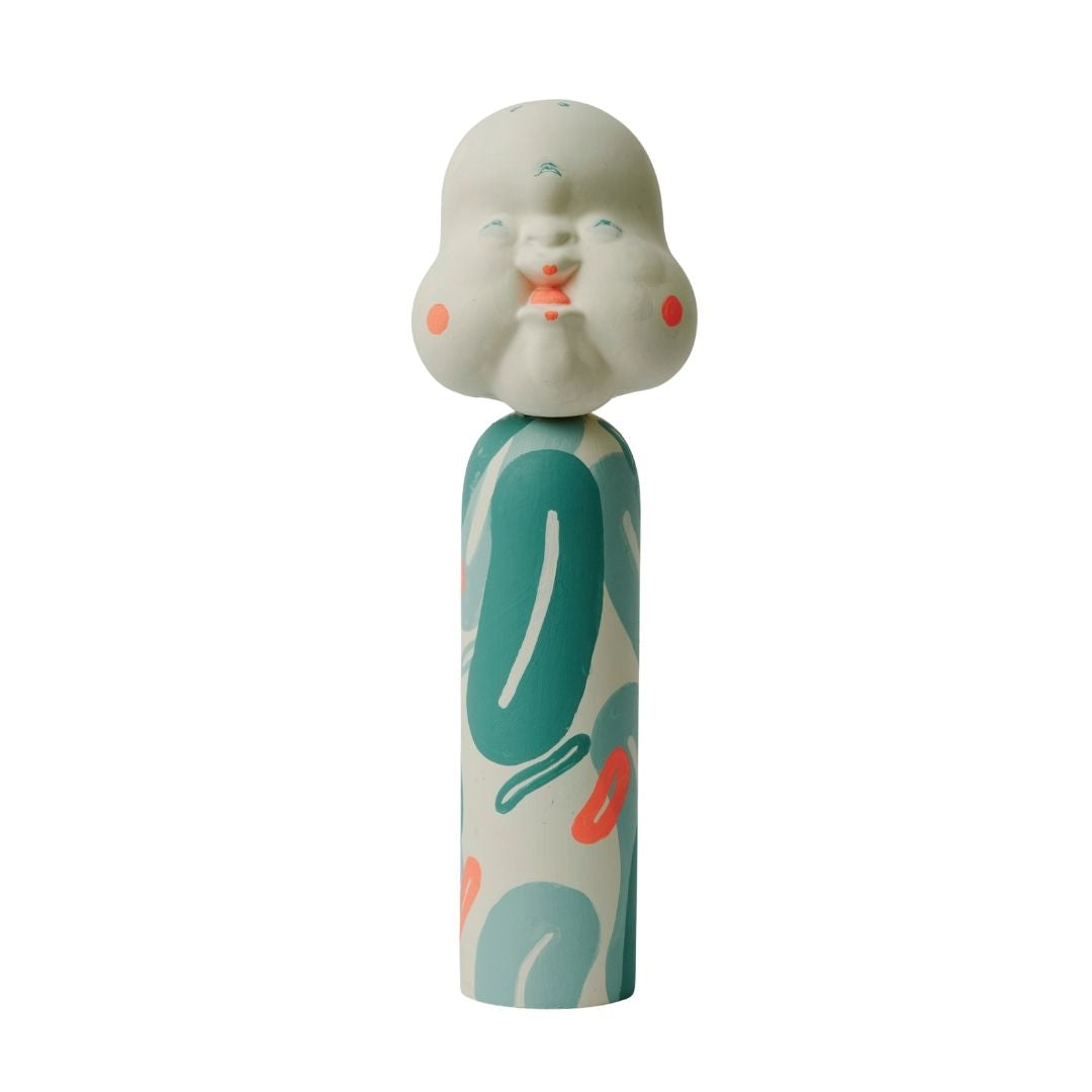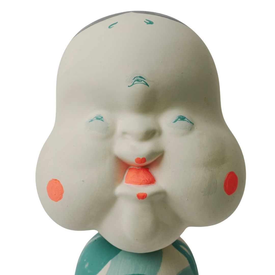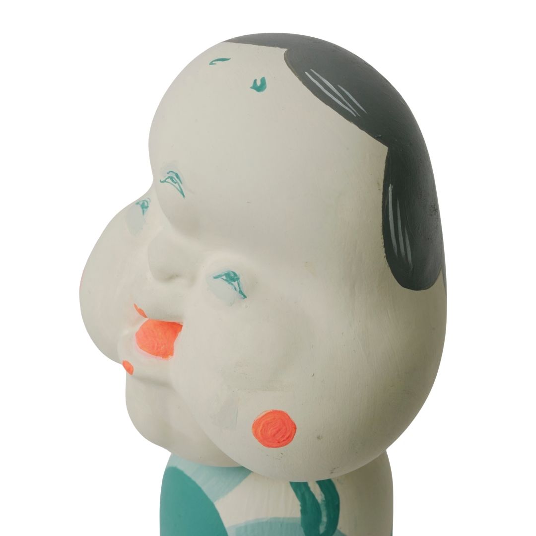 伝統的な造形に、ポップな感性を大胆に掛け合わせることで、今の日本の価値観に触れるような感覚を引き出している。コケシという存在に、フィギュア的な愛で方を重ねたような、懐かしさと新しさが同居する作品。