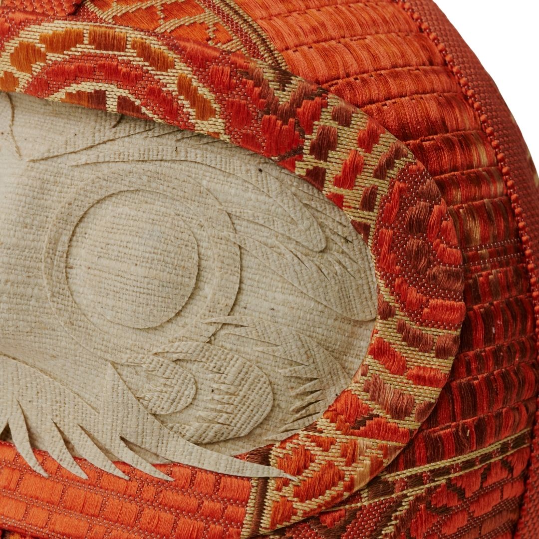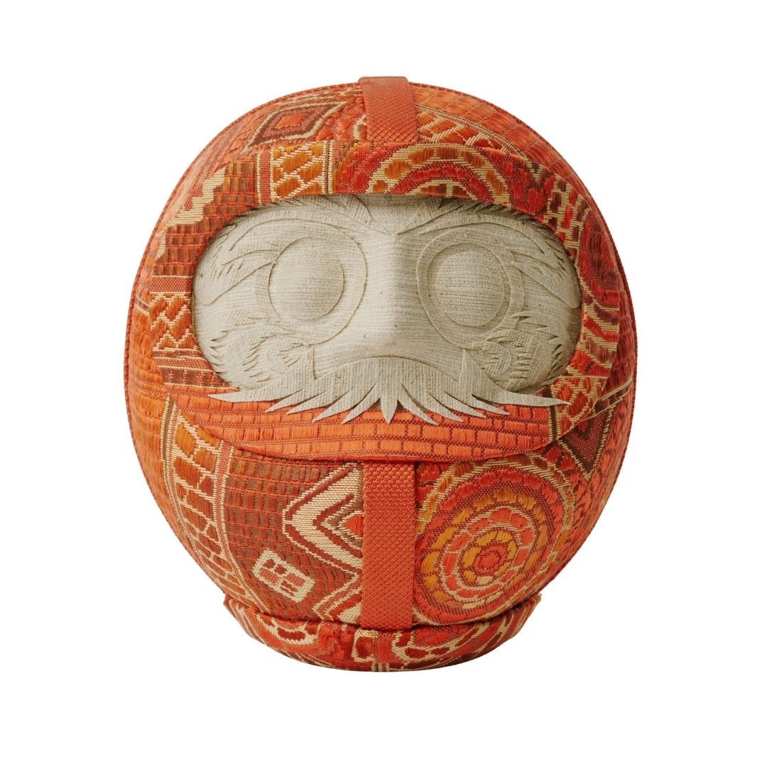 Circular and radiating patterns gently unfold, echoing the rounded silhouette of the daruma.
