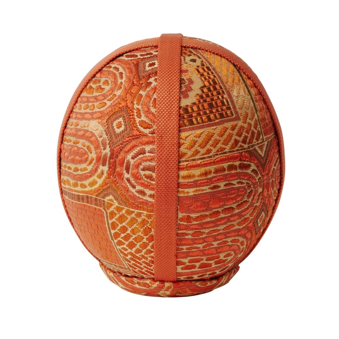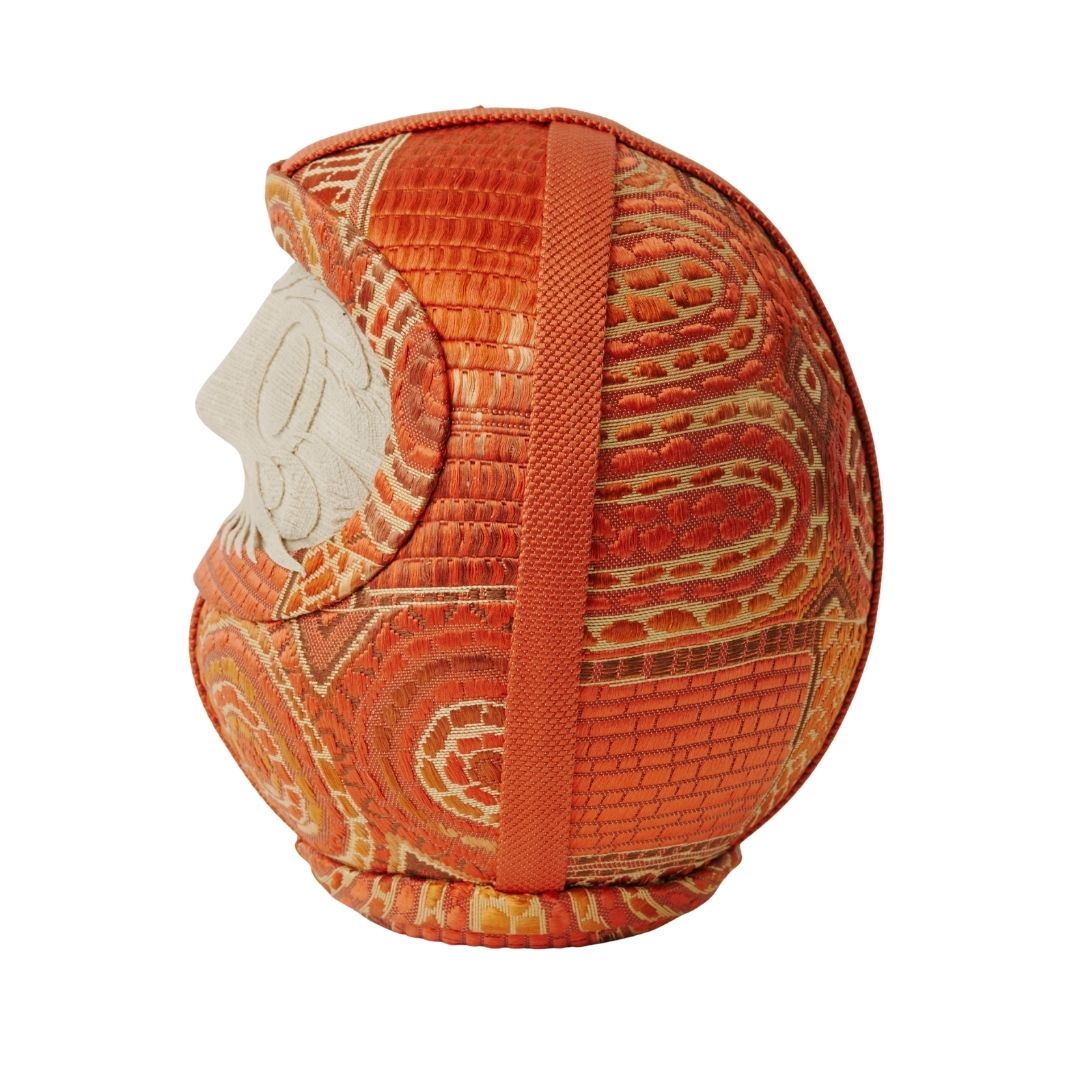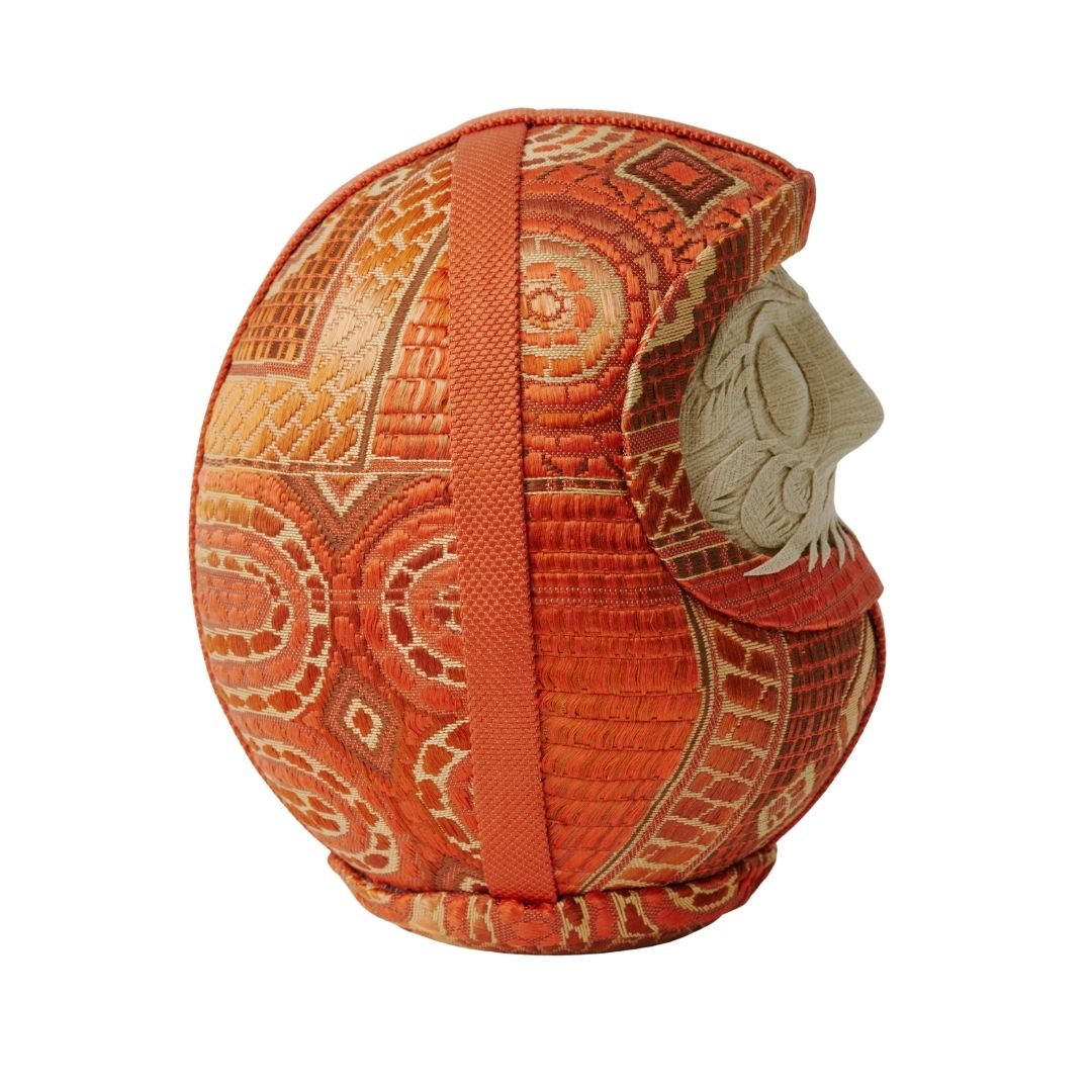 円環や放射状の文様が、達磨の丸みと呼応しながら柔らかく広がる。