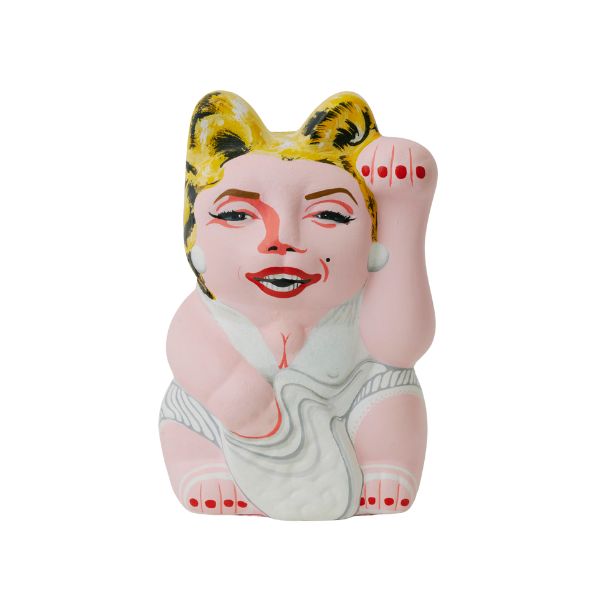 あどけなさと色気、笑いと風刺が混ざり合う、招き猫とマリリン・モンローの異色融合。