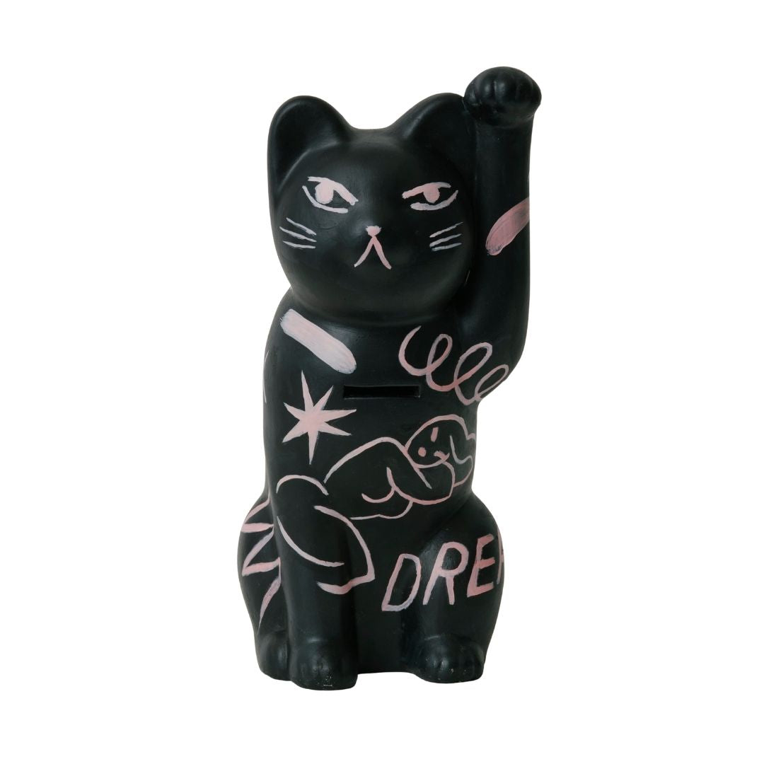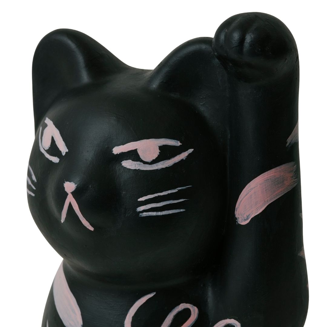 A beckoning cat extends its paw, as if to draw in wishes and dreams.