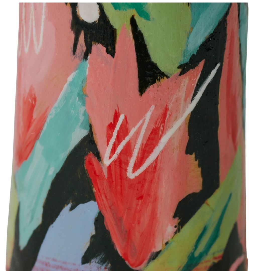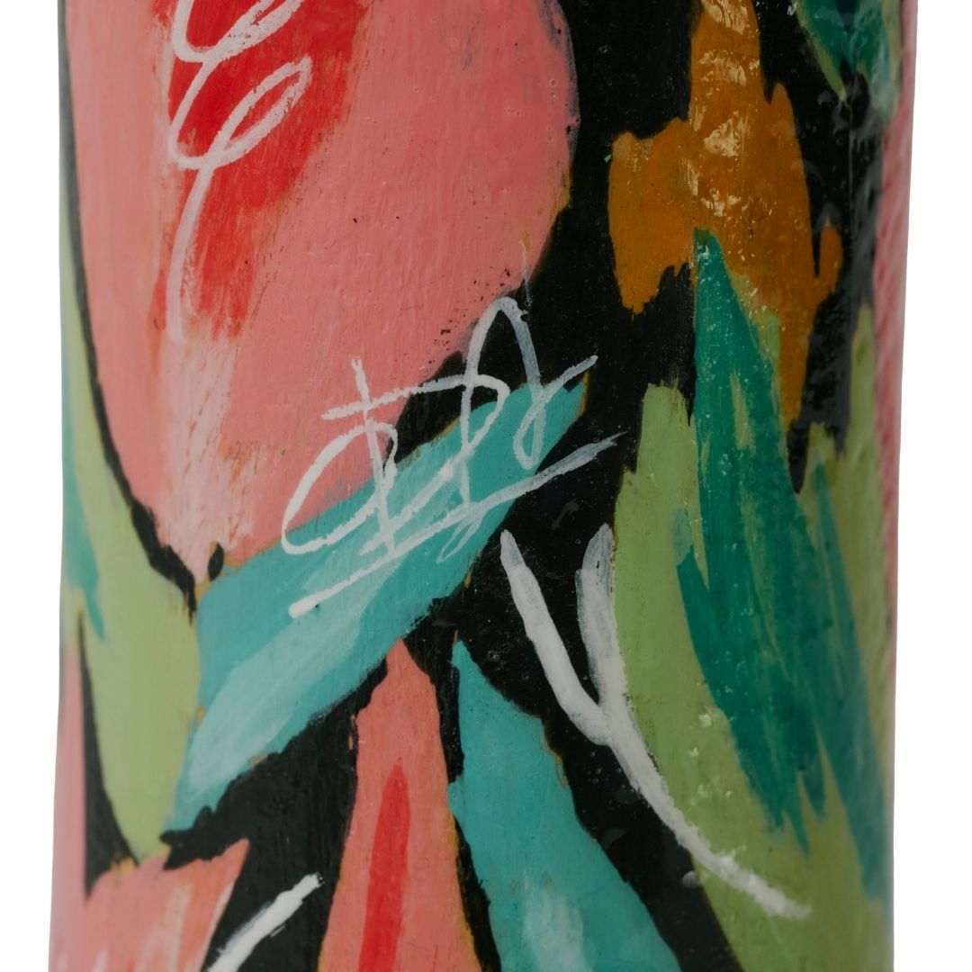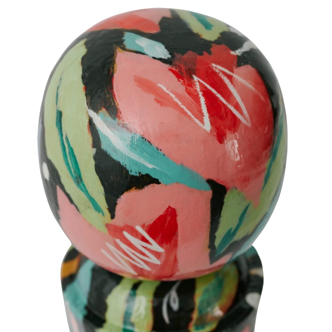 ODA Yuji氏の『Night Cruising』。夜の静けさのなか、草花がざわめきながら踊る。混じり合う絵具の色や、のびやかな形が生き物のようにこけしの表面をめぐっている。色彩も構成もリズミカルで、軽やかだけど芯がある。感覚的に描かれているようで、計算された構成力を感じさせる。一見抽象に見えて、どこか情景が立ち上がるような不思議な魅力がある。