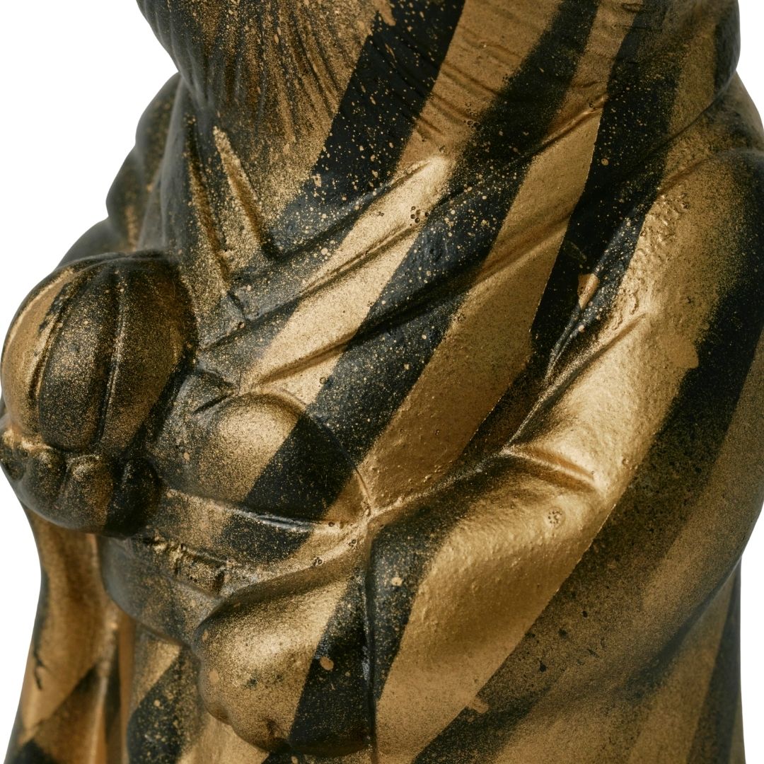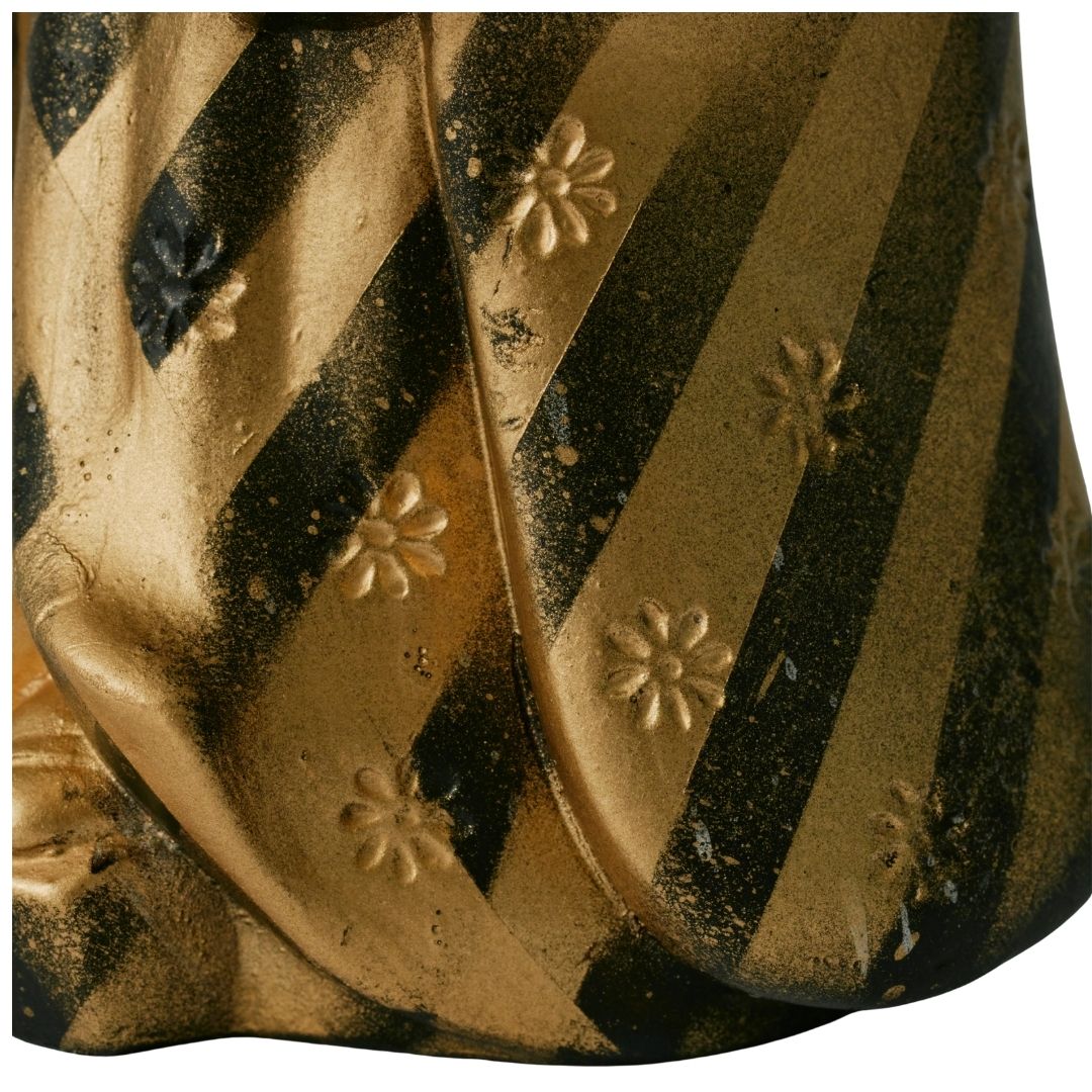 This piece reimagines the traditional Japanese Benkei pattern with bold black and gold lines.